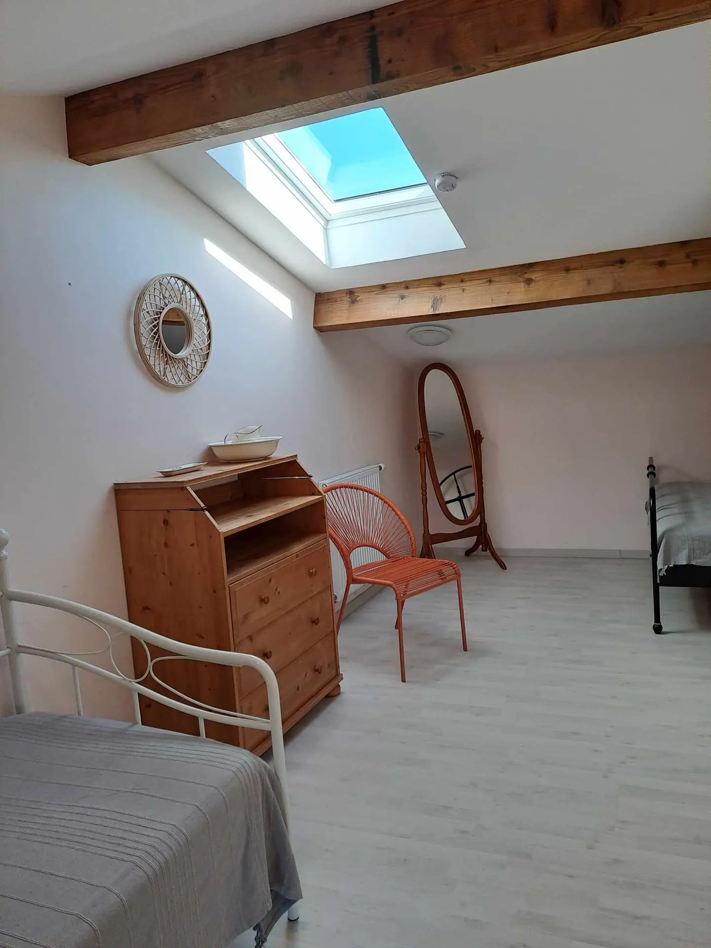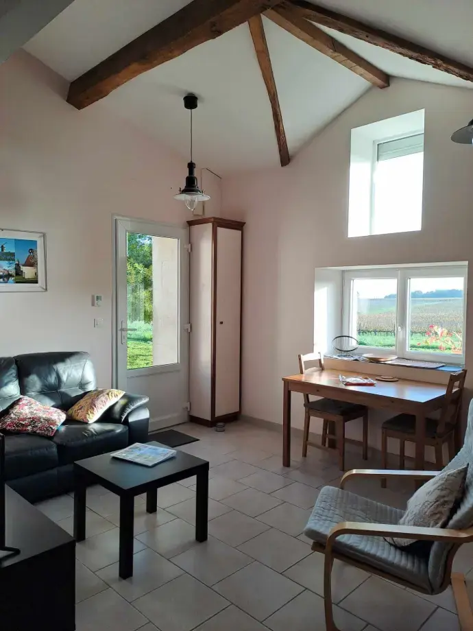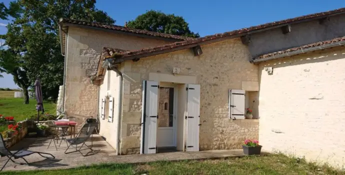 Le Figuier vous invite à la douceur de vivre sur deux niveaux avec beaucoup de charme : une lumineuse pièce de vie au rez-de-chaussée et deux chambres mansardées aux poutres apparentes à l'étage, pour accueillir jusqu'à 5 personnes. Imaginez vous prendre votre café le matin sur la terrasse du jardin, à l'ombre de notre frêne centenaire, et de nos vieilles pierres charentaises... avant de partir pour les thermes, une journée aux Antilles de Jonzac ou une dégustation dans notre propriété viticole.